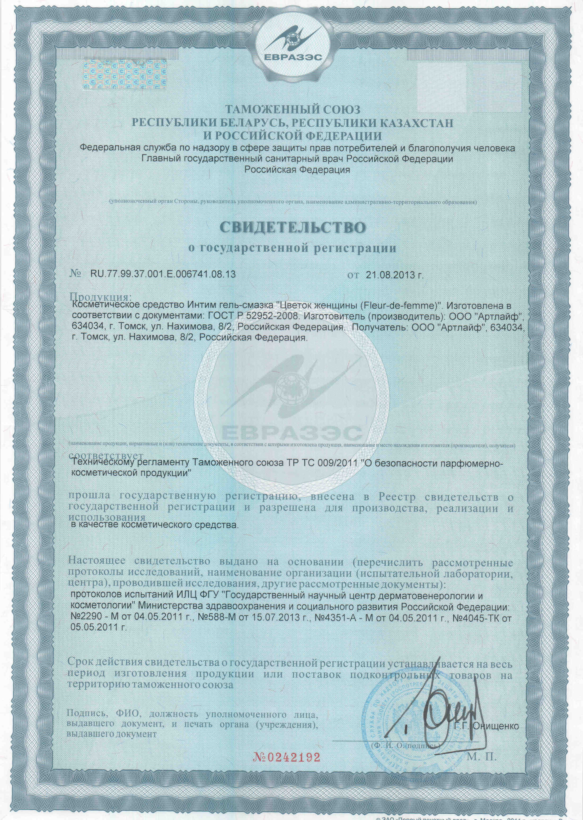 | Производитель: | ООО «Артлайф», Россия, г. Томск |