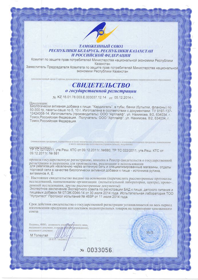 | Производитель: | ООО «Артлайф», Россия, г. Томск |