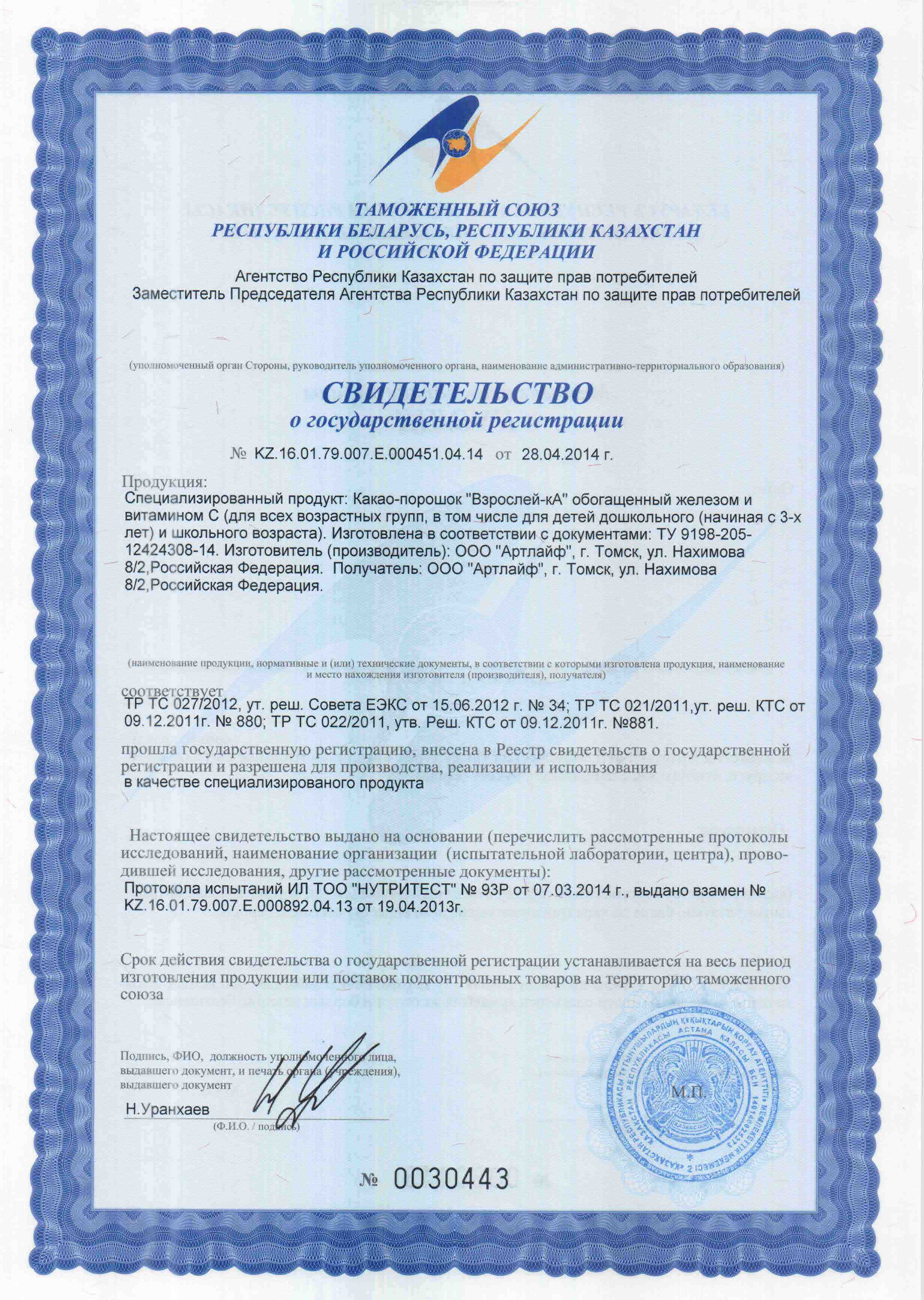 | Производитель: | ООО «Артлайф», Россия, г. Томск |