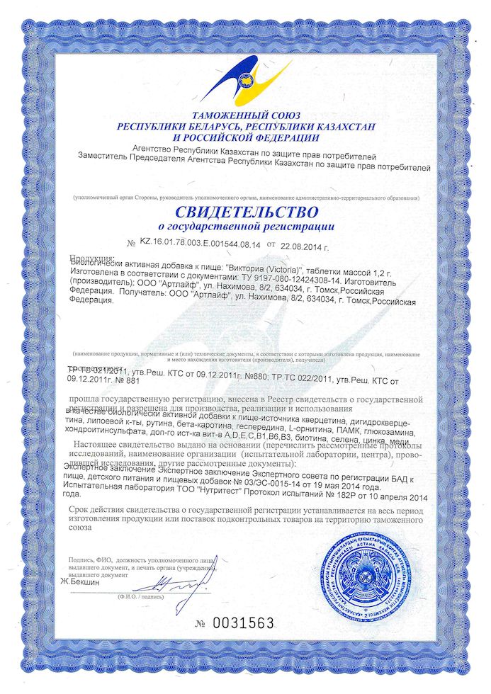БАД «Викториа» рекомендуется в качестве дополнительного источника витаминов (А, Е, Д, С, В1, В3, В6), биотина, липоевой кислоты, бета-каротина, минеральных веществ (цинка, меди, селена), источника рутина, кверцетина, гесперидина, дигидрокверцетина, проантоцианидинов, глюкозамина, хондроитинсульфата.